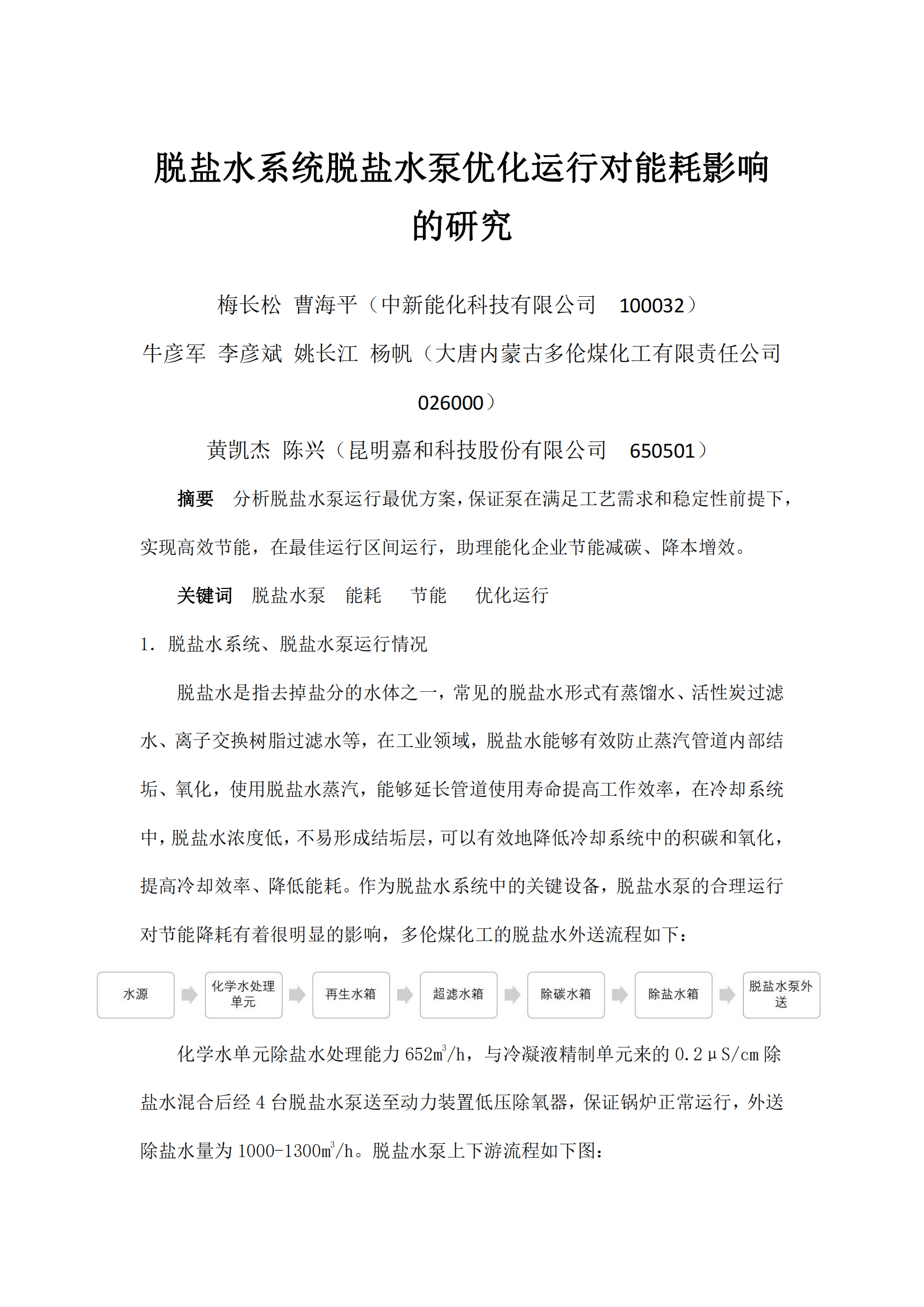 脫鹽水系統(tǒng)脫鹽水泵優(yōu)化運(yùn)行對(duì)能耗影響的研究
