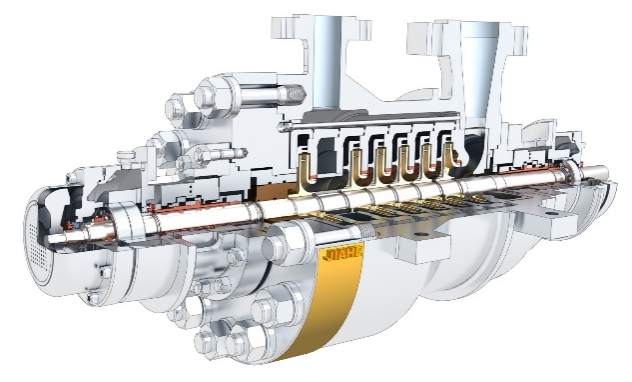 JHDT系列泵為雙殼體、徑向剖分、多級、兩端支承離心泵。符合API610-11th標準。進出口法蘭尺寸滿足ANSI或ISO標準。密封腔的設計符合ISO21049(API682)密封標準,沖洗、冷卻、加熱、急冷和緩沖液管路的連接符合API方案。底座符合API標準要求,焊接堅固并帶有集液盤和起吊耳。